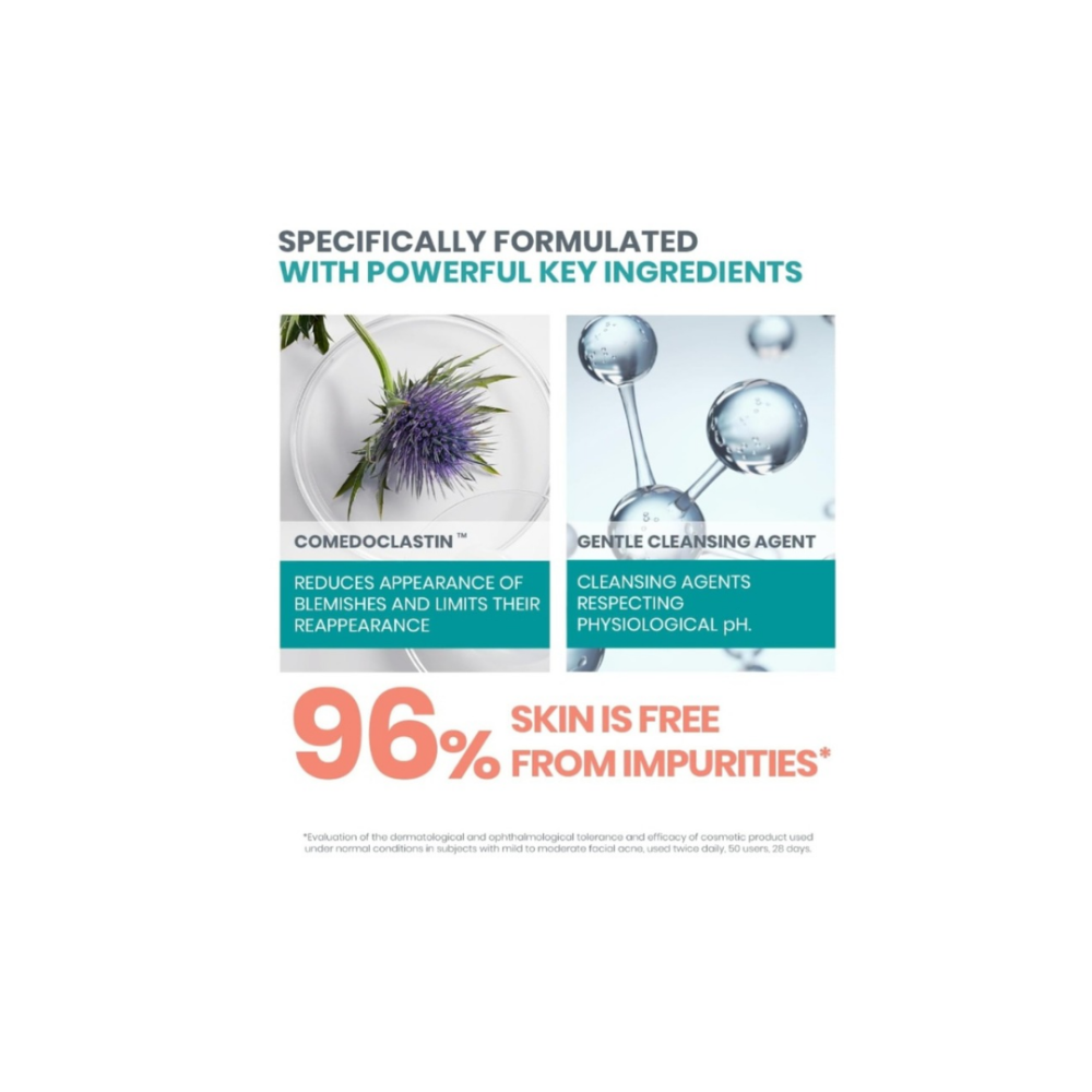 - 🌿 مكونات فعّالة: يحتوي على مونولورين الذي يقلل من إفراز الزهم، والزنك جلوكونات الذي يهدئ البشرة.